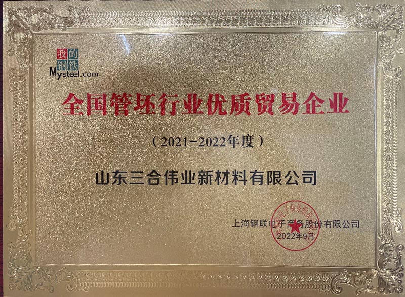 公司獲評管坯行業優質貿易企業稱號